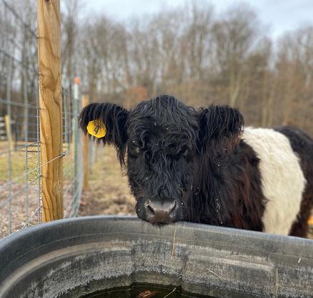 Our cows are one of our favorite animals here. We decided on the Belted Galloway breed for many reasons. They're very docile, they make great mothers and they LOVE winter. Here in PA, that's a plus! Our first two came in Sept 2022 - Ruthie & Esther. We've since added "Big Momma" who calved here on the farm in October 2023 when welcomed our first calf, Buck. Like the rest of the animals here - "Big Momma" calved successfully and unassisted. Unfortunately, as many family farms experience, we lost Buck in spring 2025 just before we were planning to butcher, to what we suspect was bloat. Esther made it to the freezer in spring 2024.
